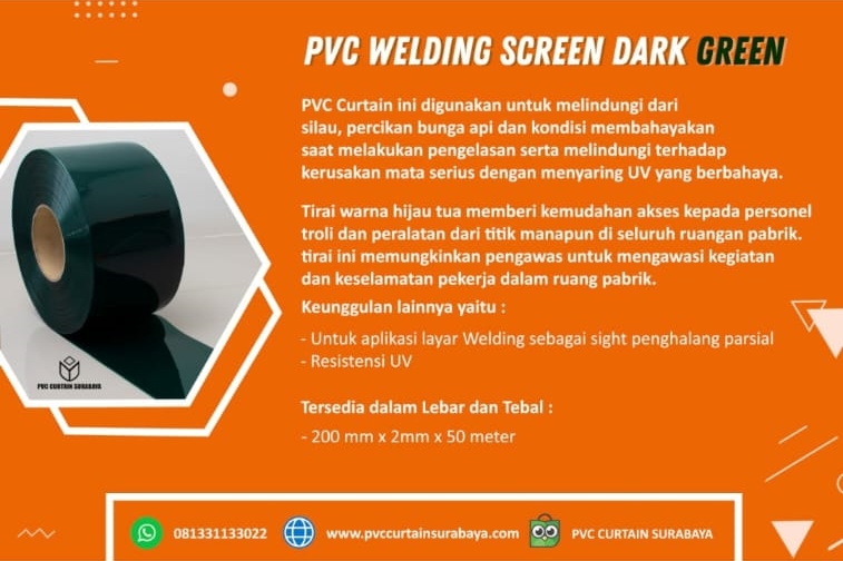 PVC Curtain ini digunakan untuk melindungi dari silau, percikan bunga api dan kondisi membahayakan saat melakukan pengelasan serta melindungi terhadap kerusakan mata serius dengan menyaring UV yang berbahaya